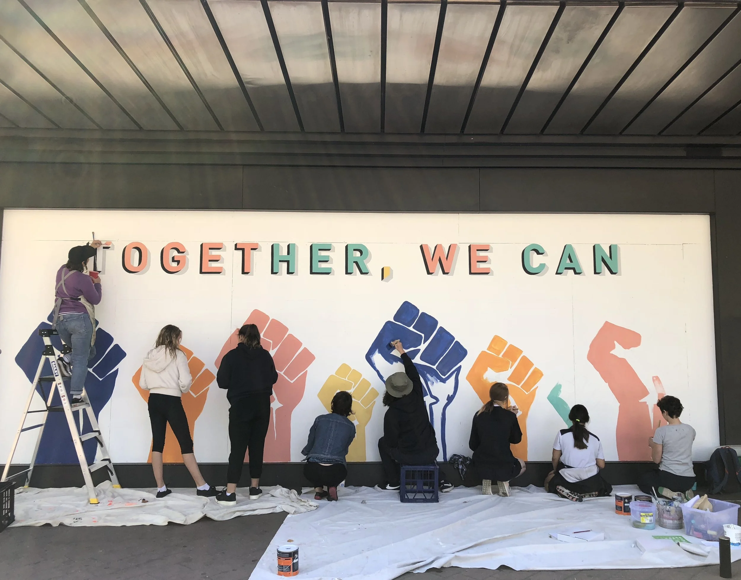 The finished artwork brought female voices of all ages into the public space with this rousing mural celebrating collaboration and support.