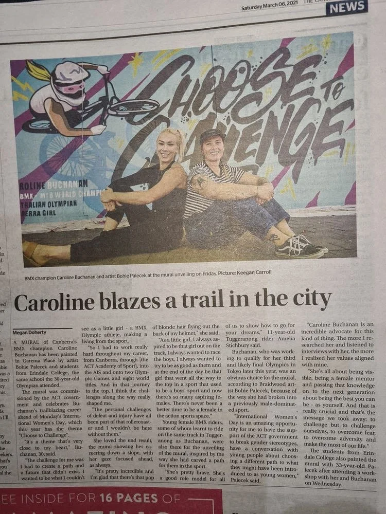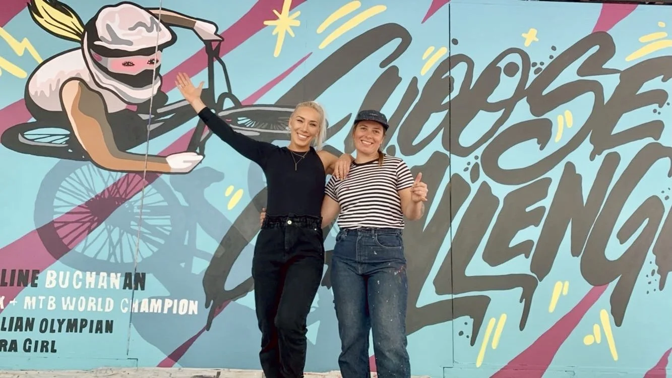 Olympian, Caroline Buchanan, and lead artist, Bohie Blackwood celebrating the project