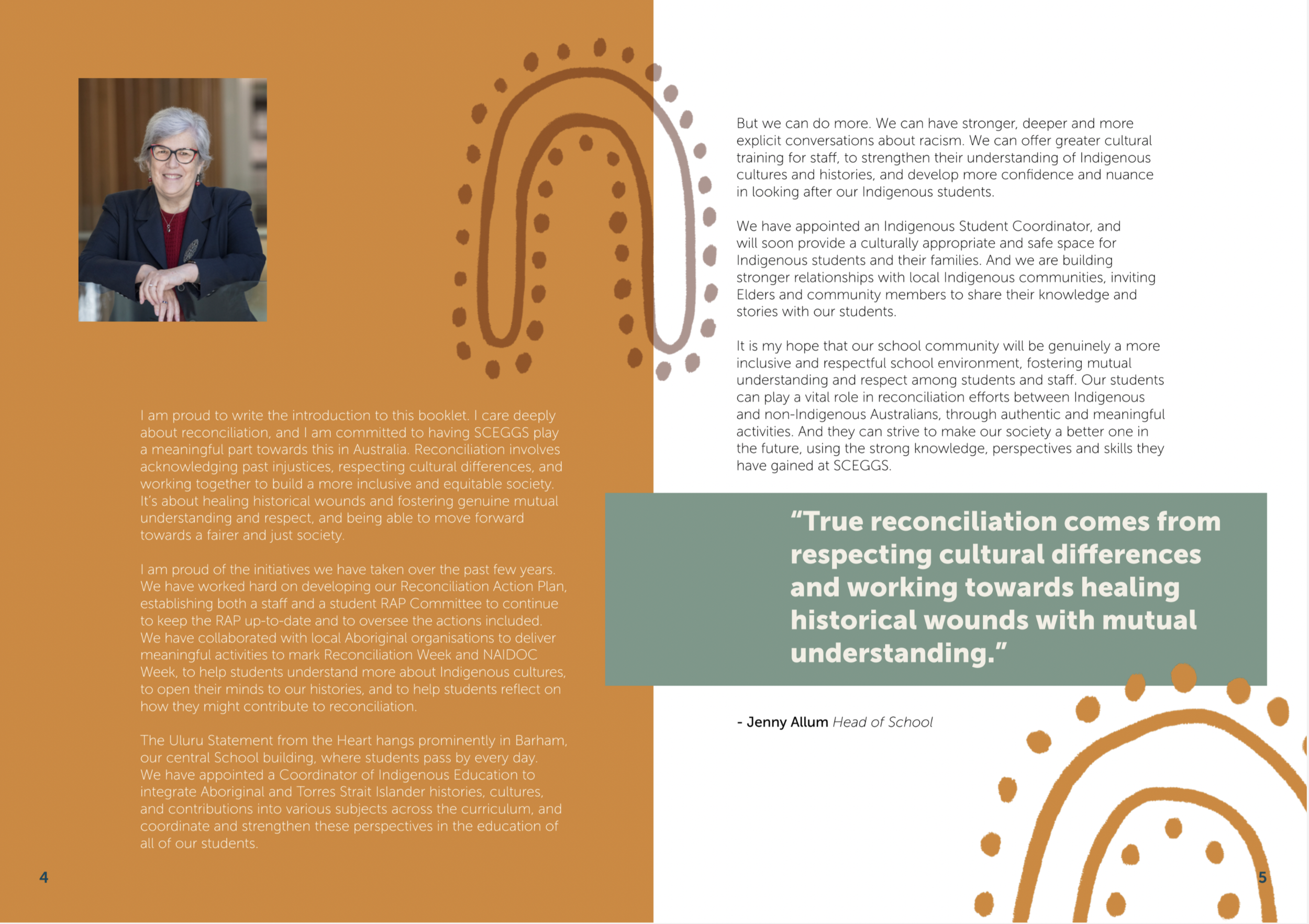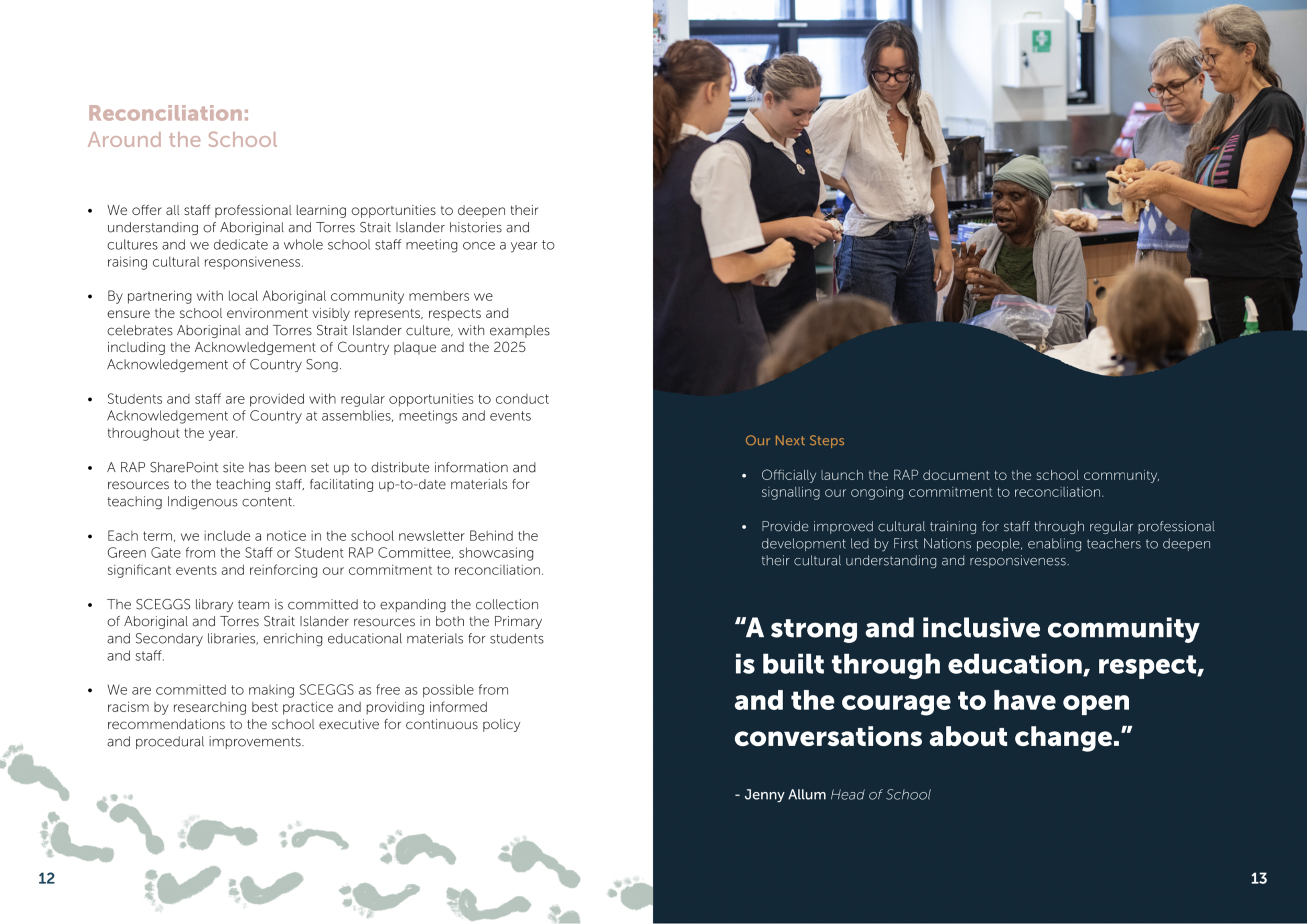 A culturally respectful and visually engaging RAP booklet that balances school leadership, student voice, and First Nations contributions